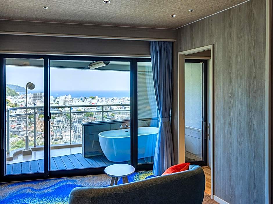 This triple room's standout feature is the private open-air bath. The triple room includes a private bathroom, well-fitted with a bath, a shower, a bidet, a hairdryer and slippers. The spacious air-conditioned triple room offers a flat-screen TV with streaming services, a tea and coffee maker, a sofa, a carpeted floor as well as sea views. The unit offers 3 beds.